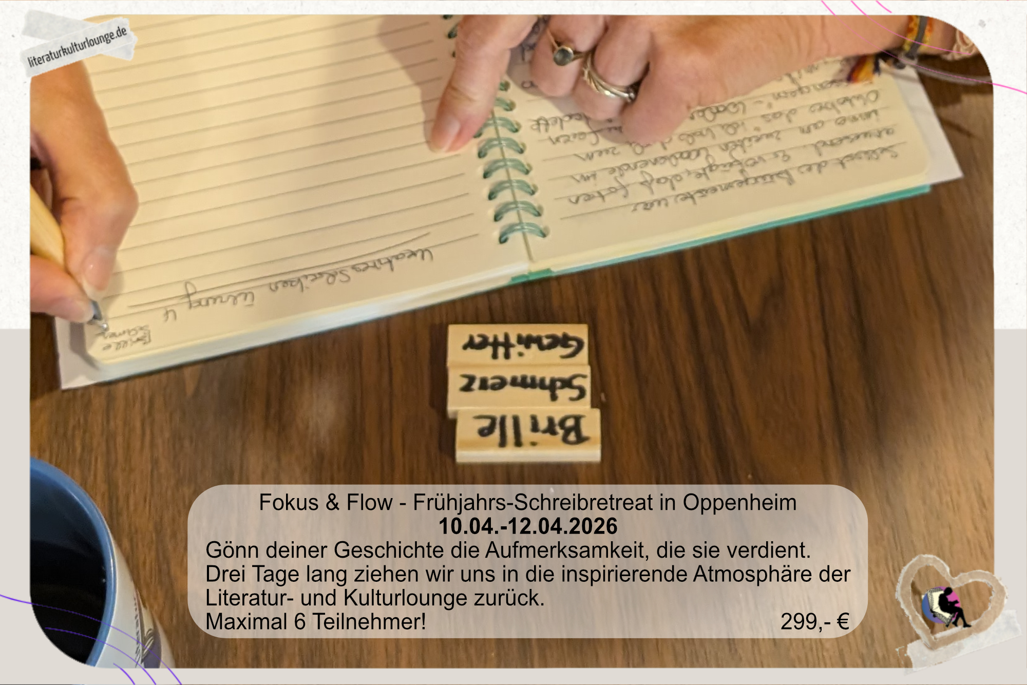 | Weitere Hinweise und Anmeldung | Weitere Infos und Ablauf unter Schreib Retreats Anmeldung an |